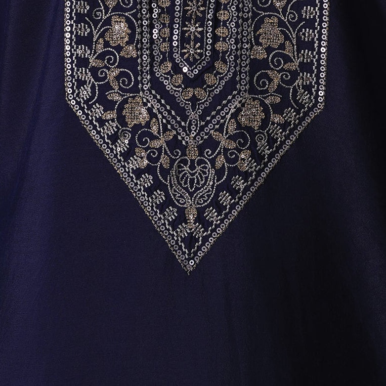 Basil Blue Embroidered Cotton Blend Kurta Set