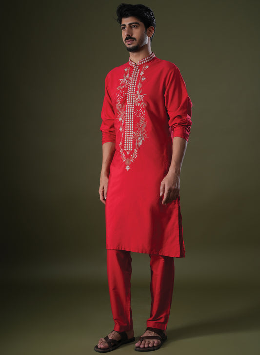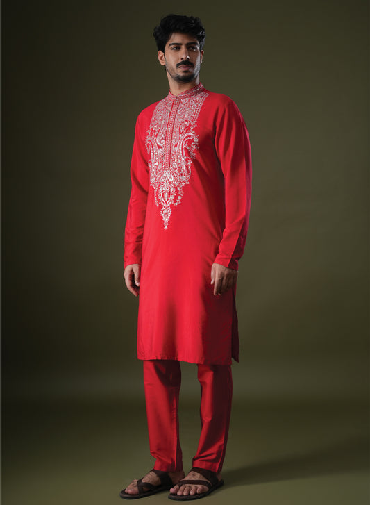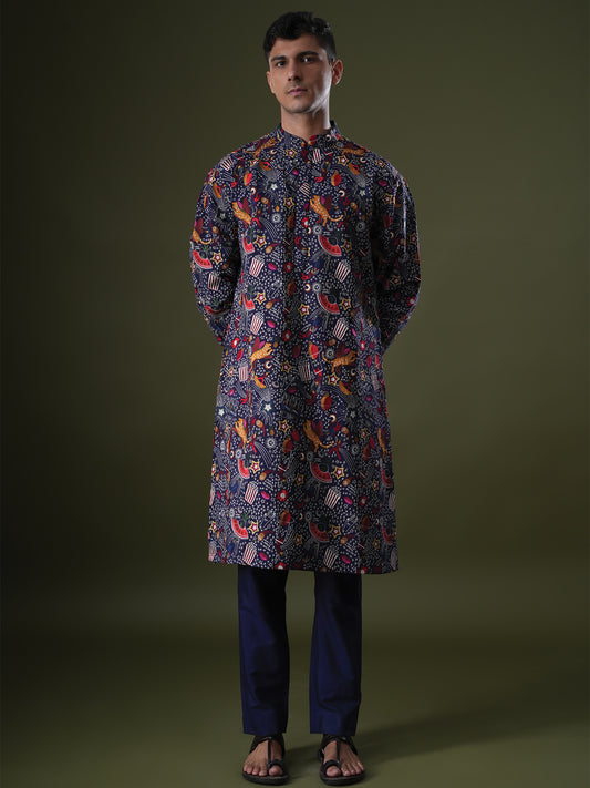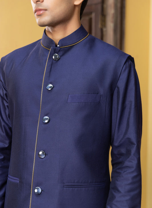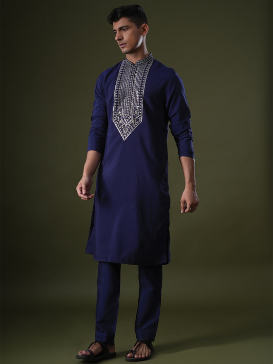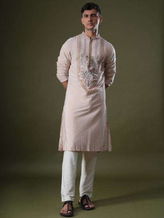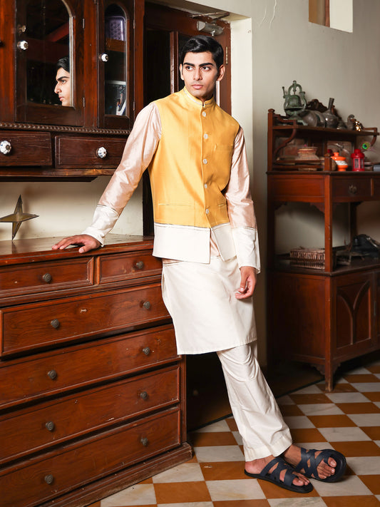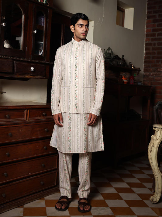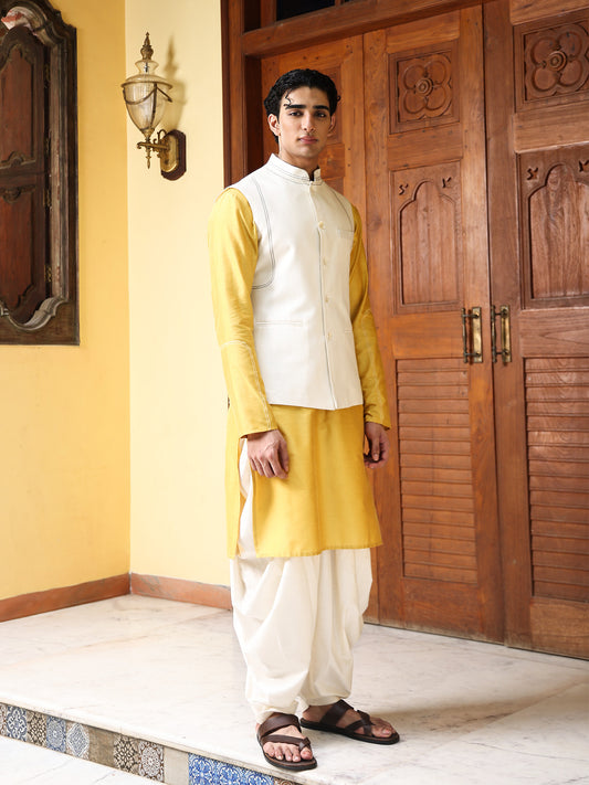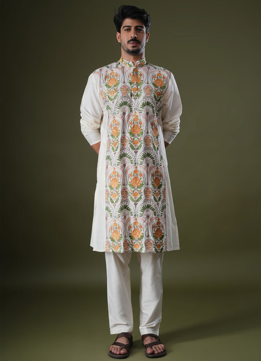Anirban Ivory Cotton Blend Embroidered Bundi Set