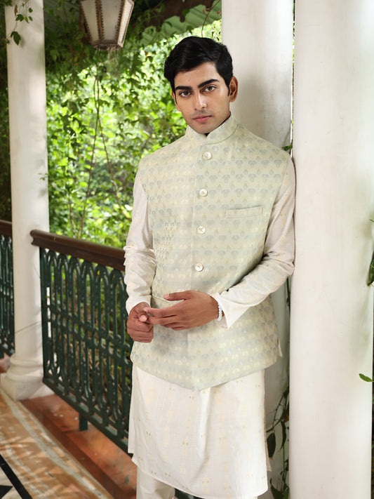 Shoubhit Pastel Green Jacquard Bundi