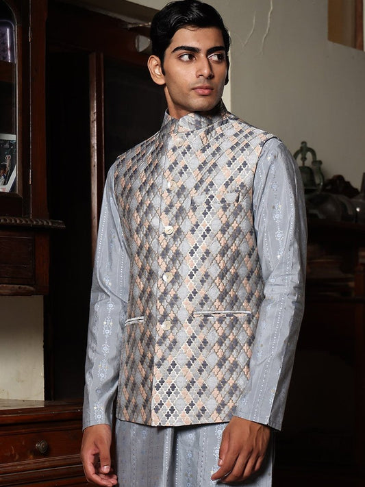 Dhivan Blue Brocade Bundi