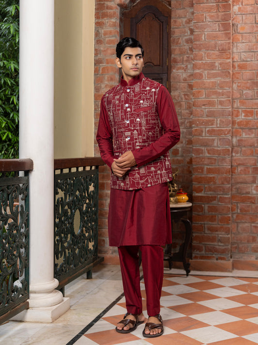 • Rohisa Wine Katan  Embroidered Bundi Set