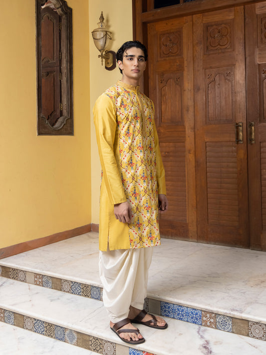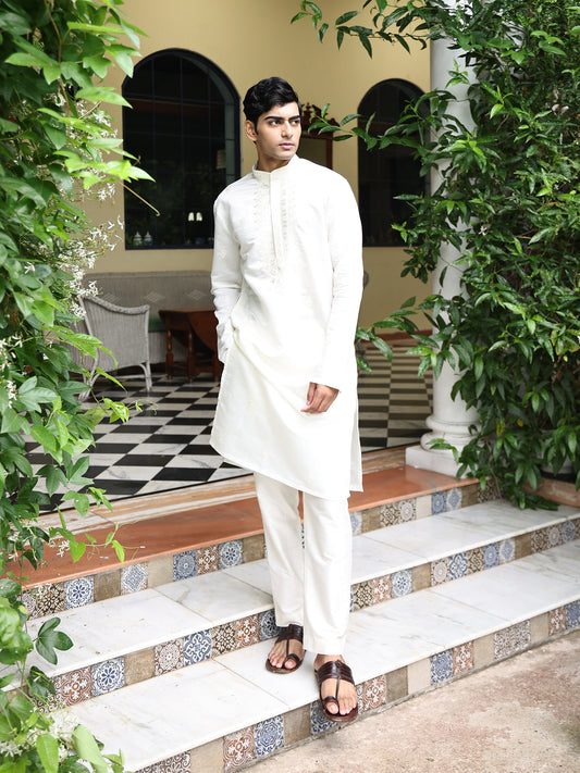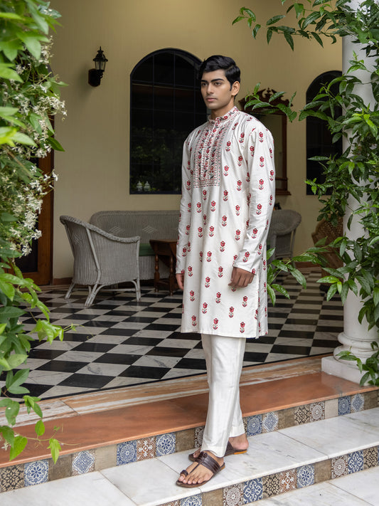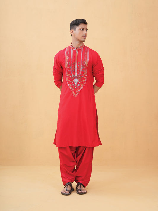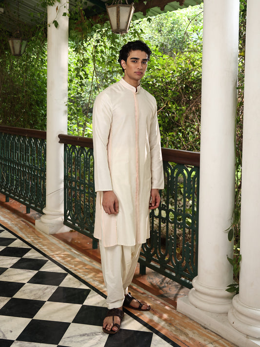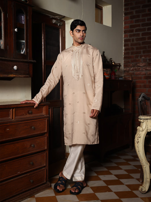 • Aarnik Peach  Embroidered Katan Kurta Set