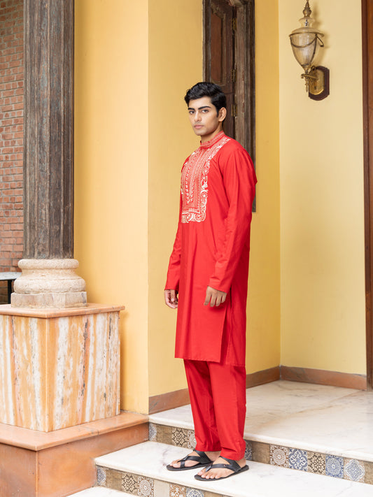 Devraj Red Embroidered Katan Kurta SetRegular price Rs. 2,447Regular priceUnit price / perRs. 4,450Sale price Rs. 2,44740%