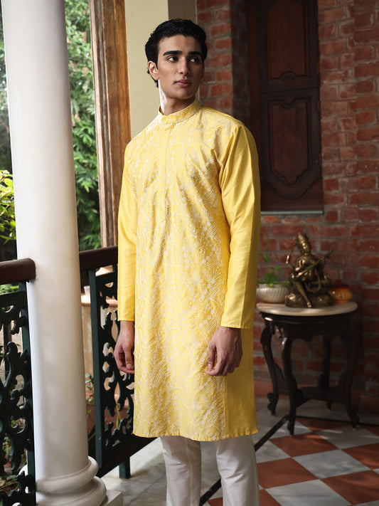 Dhadak Yellow Embroidered Cotton Blend KurtaRegular price Rs. 1,809Regular priceUnit price / perRs. 3,015Sale price Rs. 1,809Sold out