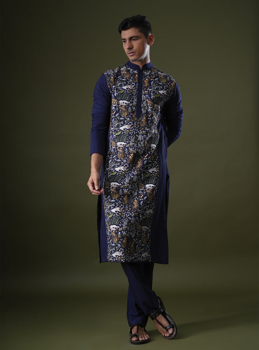 Laksh Blue Embroidered Katan Kurta SetRegular price Rs. 8,379Regular priceUnit price / perRs. 2,500Sale price Rs. 8,379