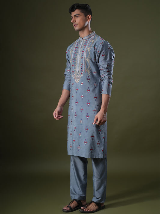 Dheer Gray Embroidered Katan Kurta SetRegular price Rs. 8,534Regular priceUnit price / perRs. 11,379Sale price Rs. 8,53440%