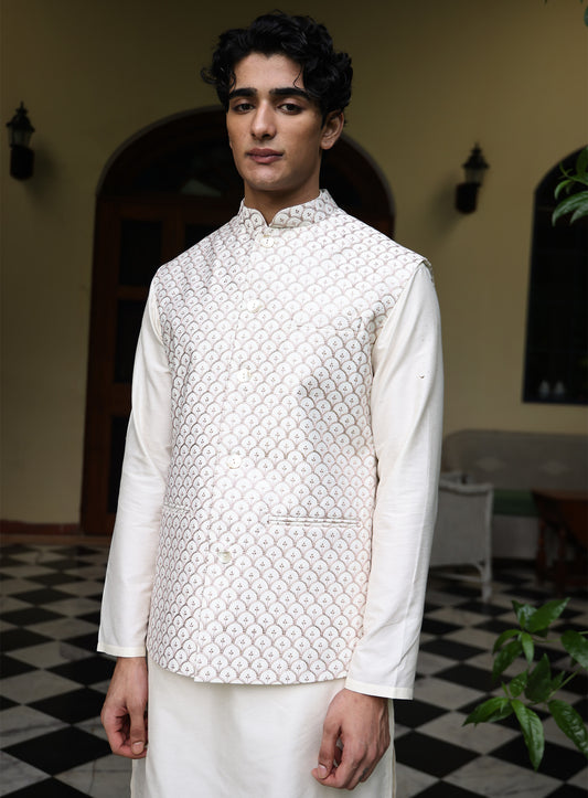 Kannan Ivory Cotton Blend Embroidered Bundi SetRegular price Rs. 5,655Regular priceUnit price / perRs. 9,425Sale price Rs. 5,65540%