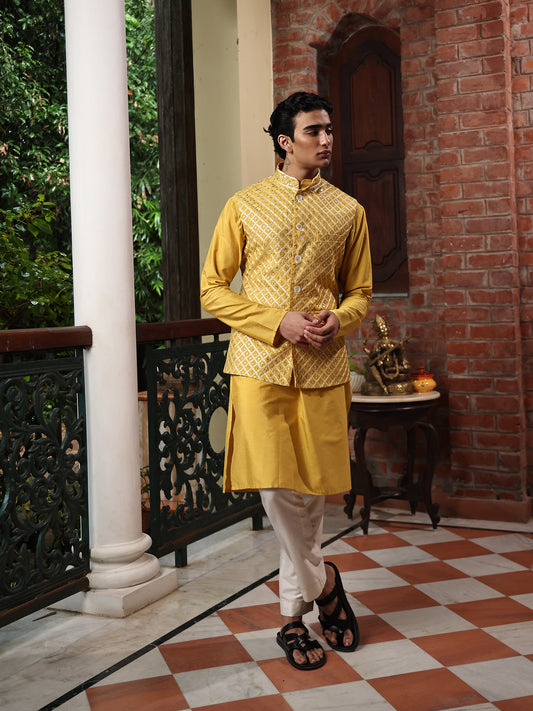 Tarsa Mustard Cotton Blend Embroidered Bundi SetRegular price Rs. 5,784Regular priceUnit price / perRs. 9,640Sale price Rs. 5,78440%