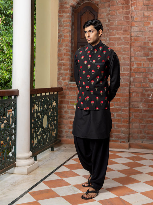 Asher Black Cotton Blend Embroidered Bundi SetRegular price Rs. 5,922Regular priceUnit price / perRs. 9,870Sale price Rs. 5,92240%