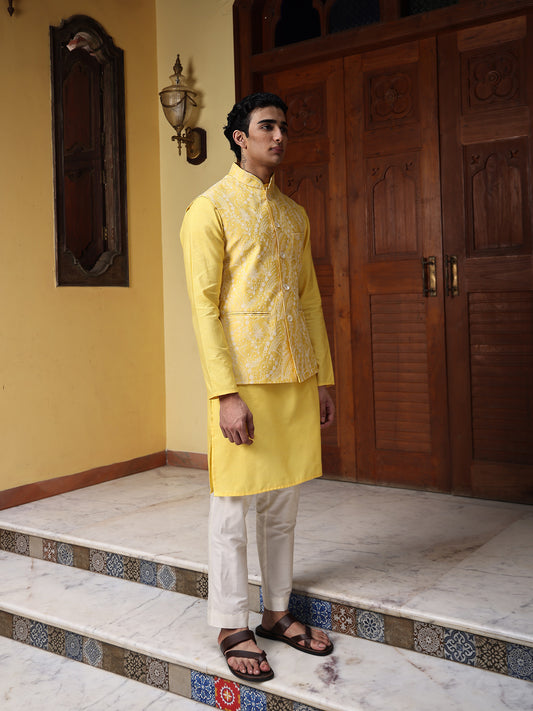 Seth Yellow Cotton Blend Embroidered Bundi SetRegular price Rs. 5,616Regular priceUnit price / perRs. 9,360Sale price Rs. 5,616Sold out