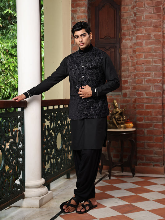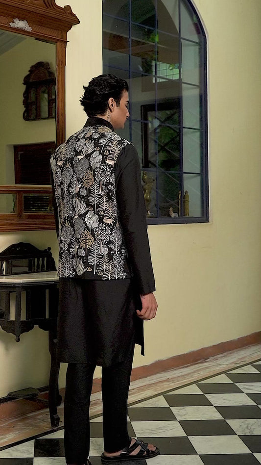 Kusa Black Velvet Embroidered Bundi SetRegular price Rs. 7,686Regular priceUnit price / perRs. 12,810Sale price Rs. 7,686Sold out