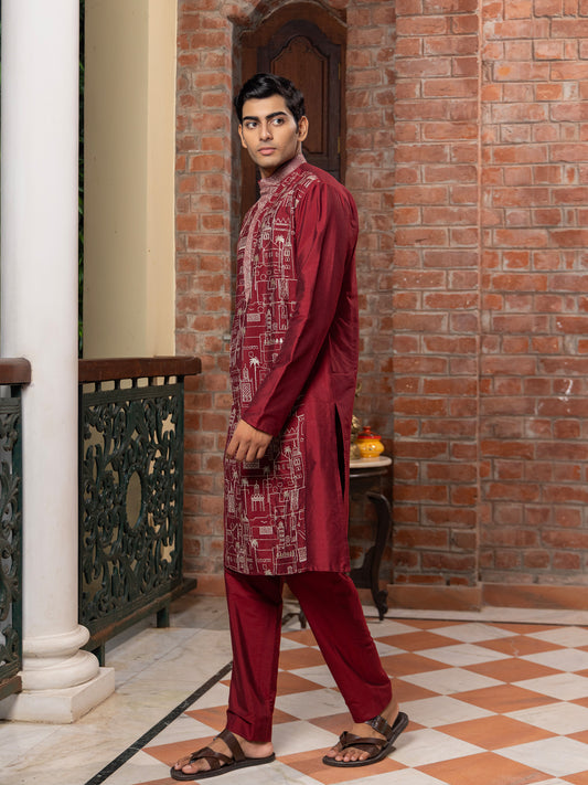 Sundara Wine Embroidered Katan Kurta SetRegular price Rs. 3,006Regular priceUnit price / perRs. 5,010Sale price Rs. 3,00640%