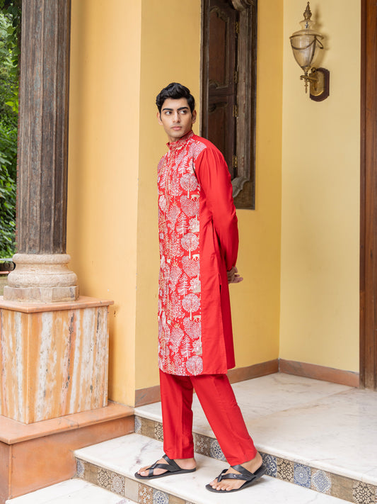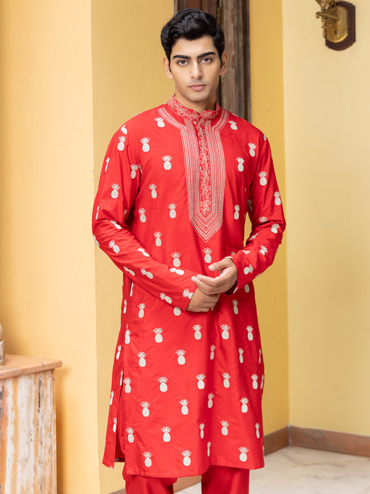 Samyant Red Embroidered Katan Kurta SetRegular price Rs. 4,812Regular priceUnit price / perRs. 8,020Sale price Rs. 4,81240%