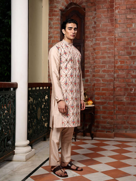 Mukunda Beige Embroidered Katan Kurta SetRegular price Rs. 2,454Regular priceUnit price / perRs. 4,720Sale price Rs. 2,45440%