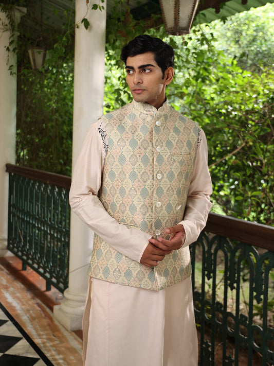 Narayan Beige Katan Embroidered Bundi SetRegular price Rs. 8,835Regular priceUnit price / perRs. 14,725Sale price Rs. 8,83540%