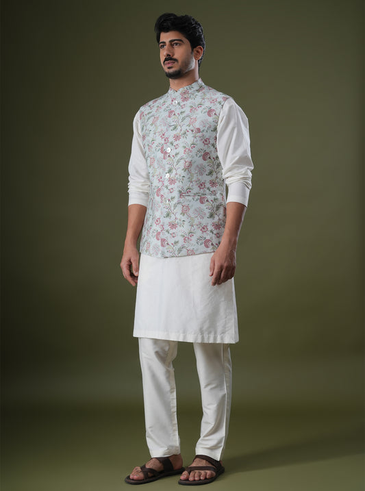 Aadi Sage Green Printed Cotton Blend BundiRegular price Rs. 3,086Regular priceUnit price / perRs. 4,115Sale price Rs. 3,08640%
