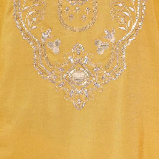 Aarvin Yellow Embroidered Katan Kurta Set