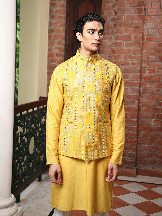 Bert Mustard Cotton Blend Embroidered BundiRegular price Rs. 3,591Regular priceUnit price / perRs. 5,985Sale price Rs. 3,59140%
