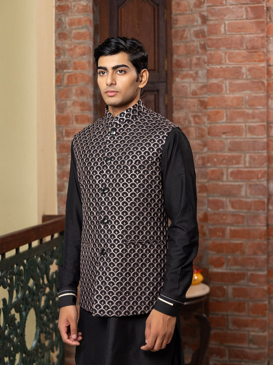 Asher Black Cotton Blend Embroidered BundiRegular price Rs. 3,387Regular priceUnit price / perRs. 5,645Sale price Rs. 3,38740%