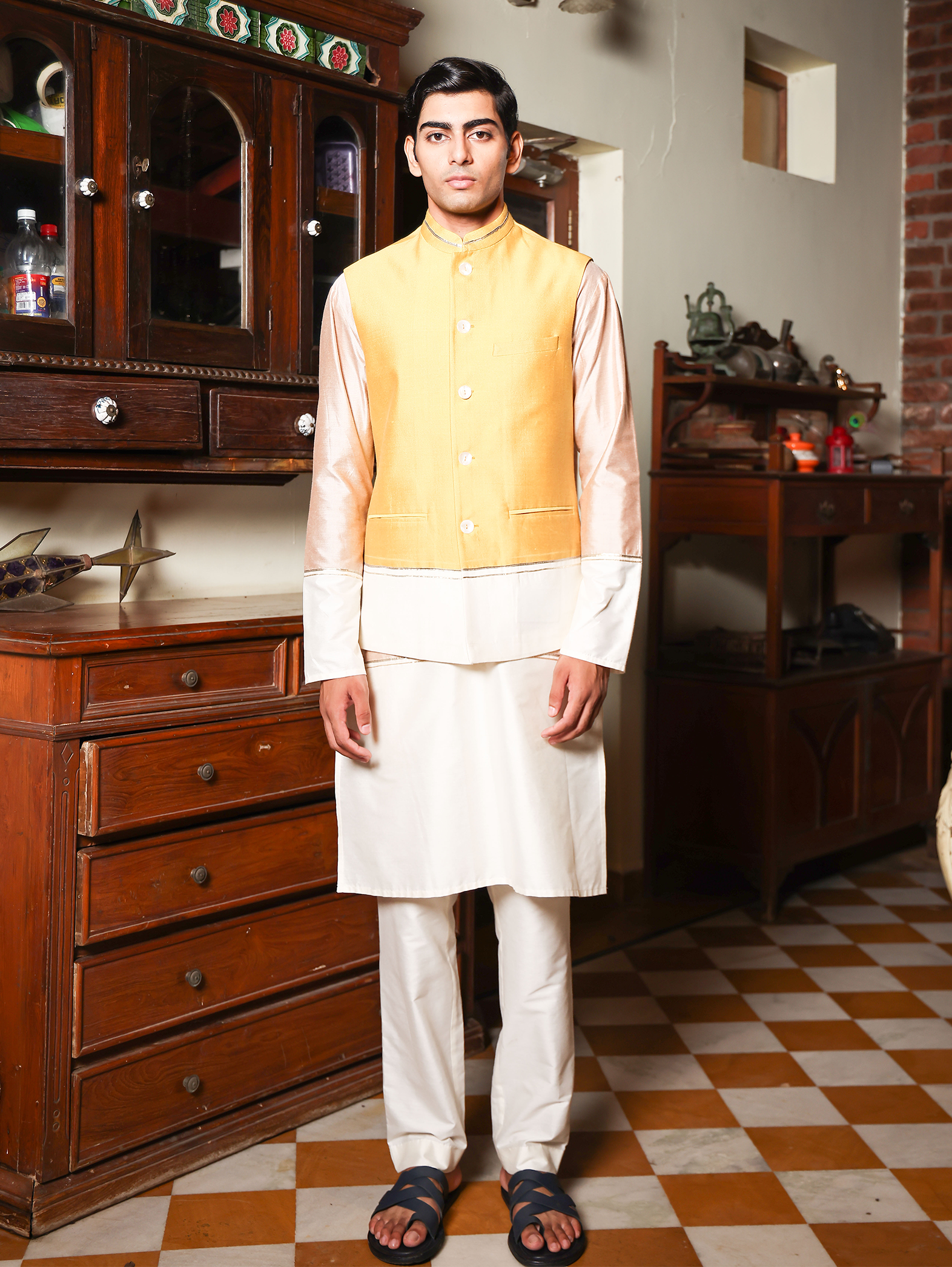 Experience the beauty of traditional artistry with our stunning Dvijesh Bundi. Its unique textures and detailed embroidery make it the perfect complement to any kurta or pants, allowing you to celebrate culture in style.