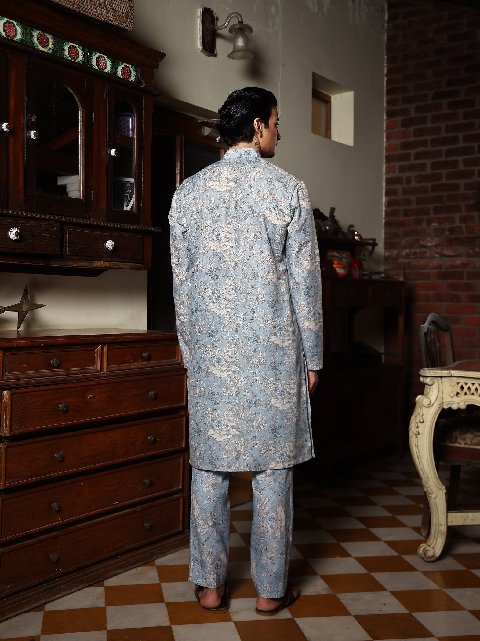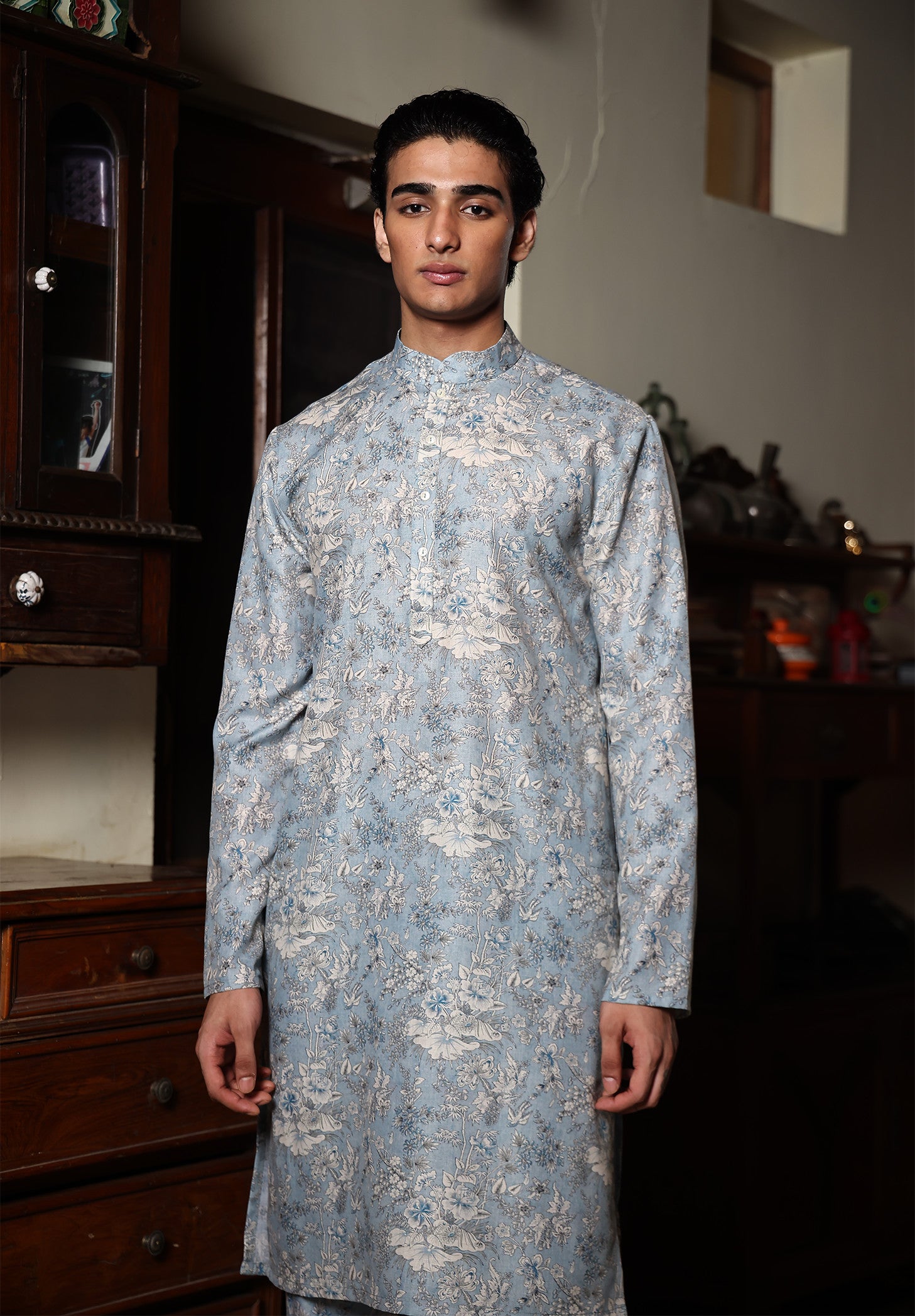 Kian Kurta set, crafted from premium cotton Blend fabric, is versatile for any occasion. Its elegant design pairs beautifully with pants, churidars, or bundis, offering a sophisticated blend of comfort, tradition, and modern style for a refined look.