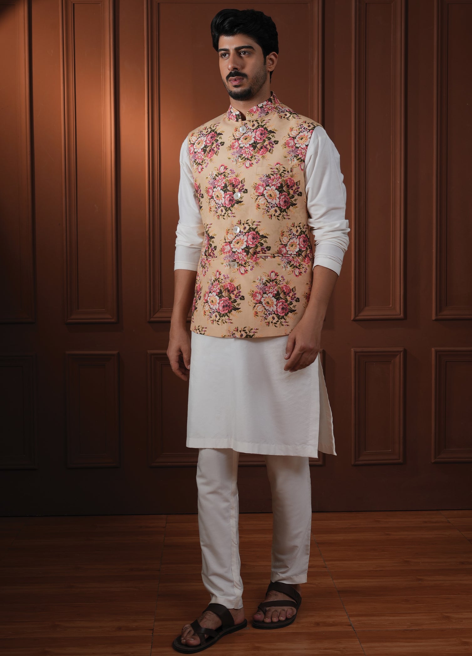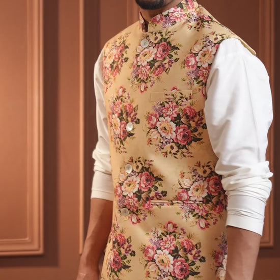 The Krpa Yellow Printed Cotton Blend Bundi is a vibrant and lightweight layer crafted in a breathable cotton blend. Its sunny yellow hue and subtle prints make it perfect for adding a cheerful touch to festive daytime ensembles.