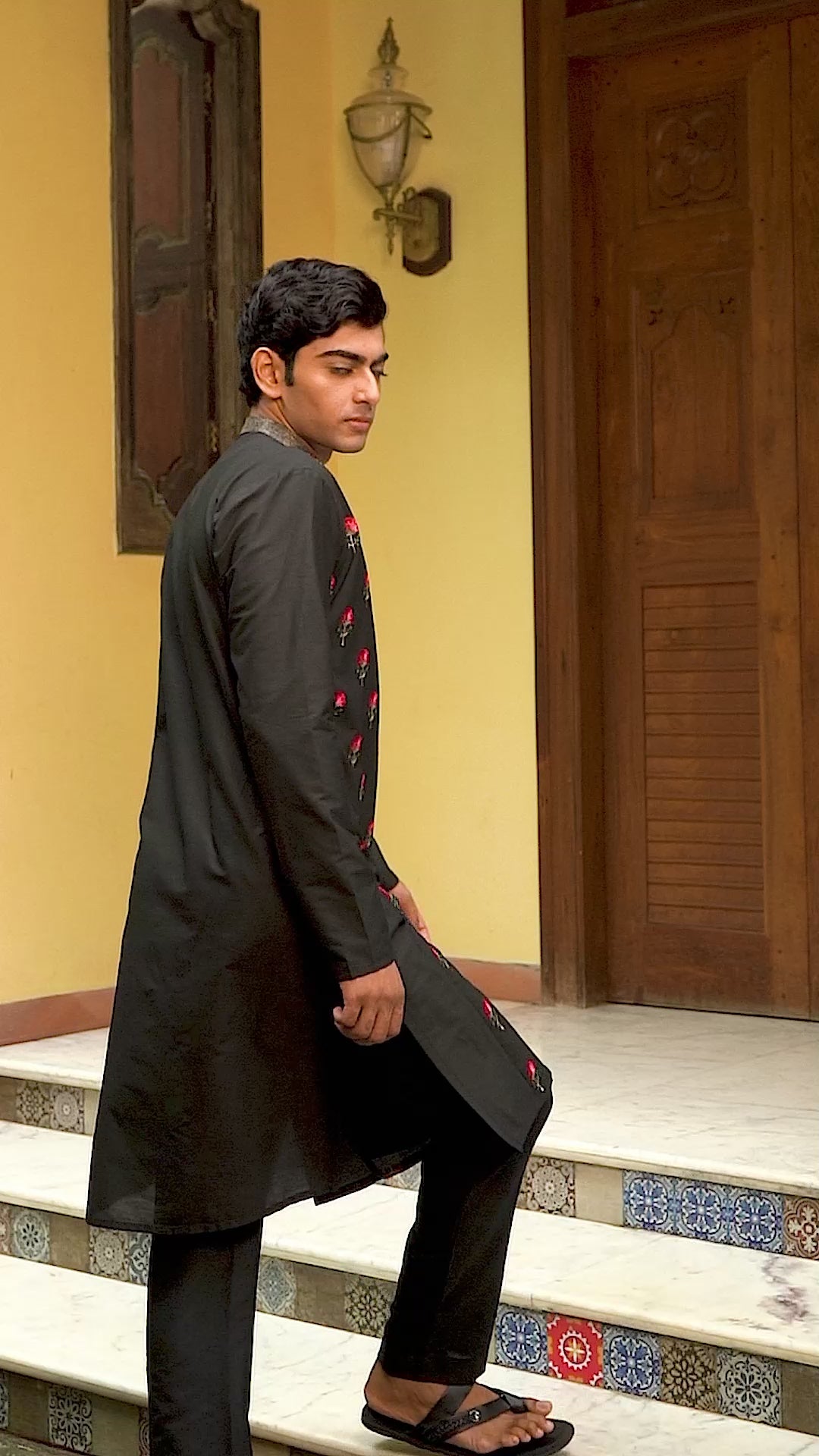 Pulak Black Embroidered Katan Kurta