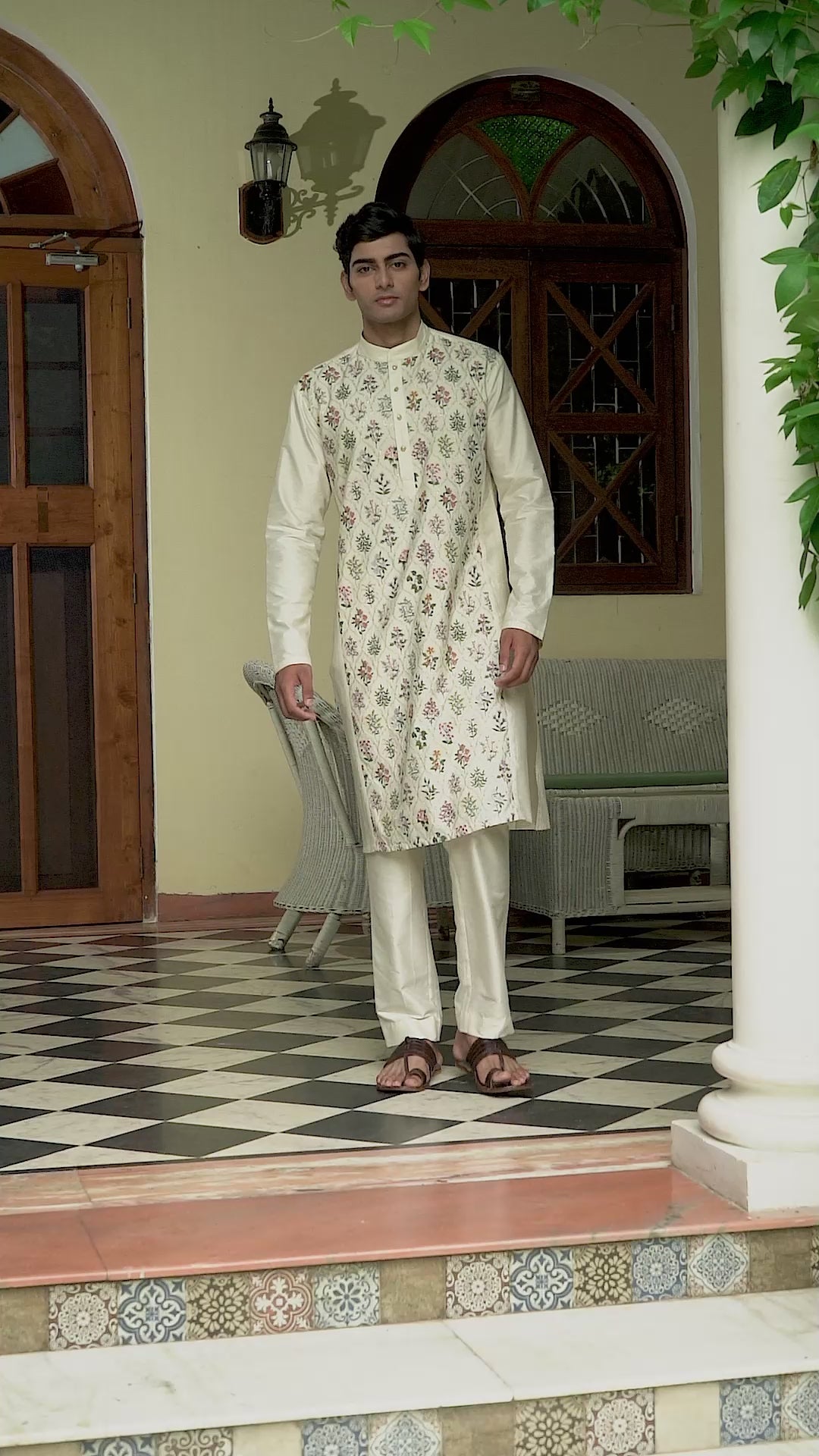 Radhesh Ivory Embroidered Katan Kurta