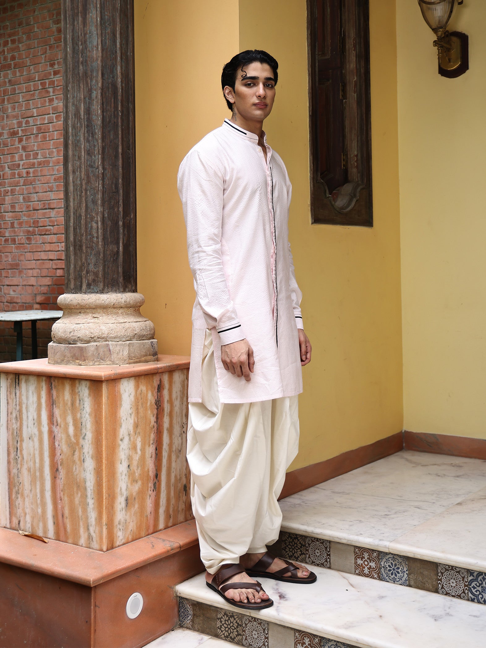 Step into style with our classic Vamsi Kurta set, featuring a refined cut and delicate embroidery. Made from lightweight cotton, it’s perfect for any season. Pair it with tailored pants for a chic, polished look that’s effortlessly elegant.